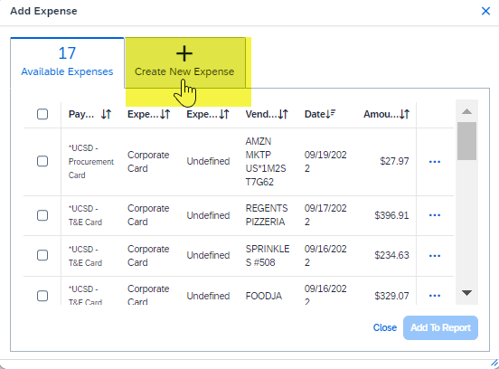 3. Select the trip-related card transaction(s) and select Add to Report.