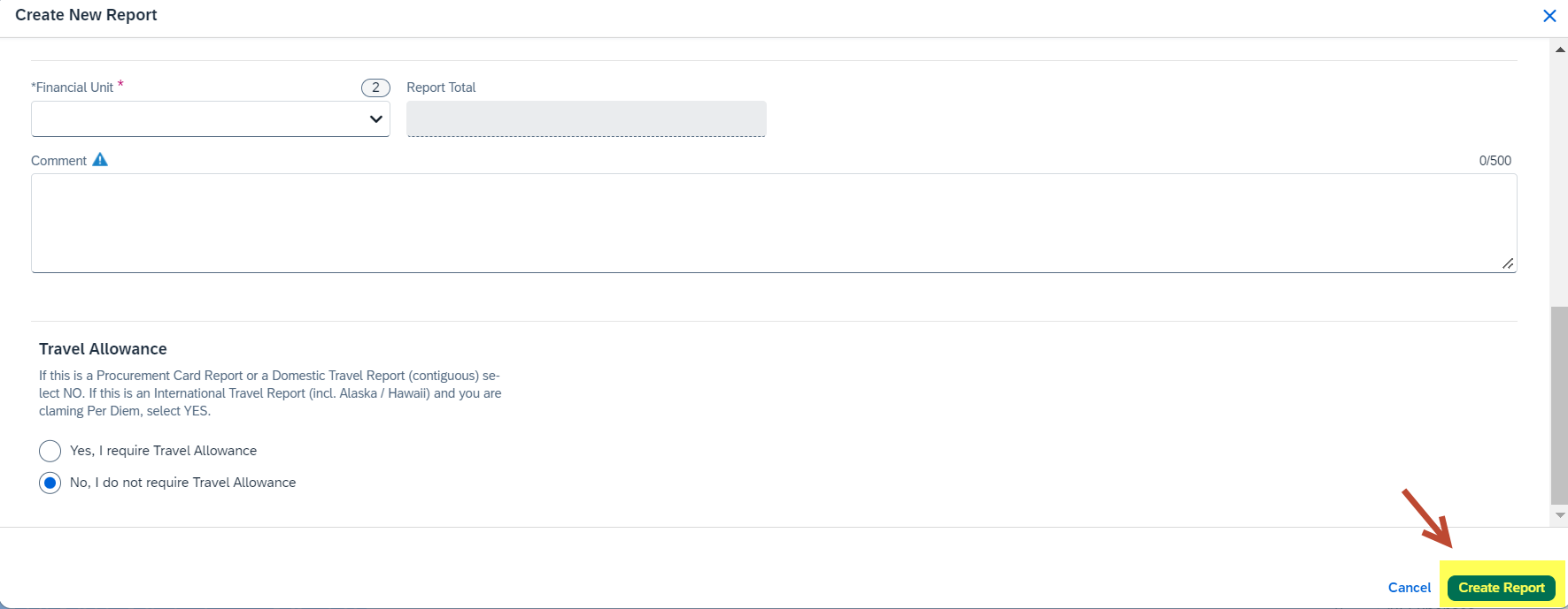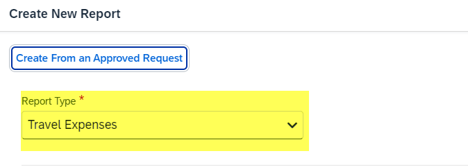 4. In Create New Report > Report Type verify Travel Expenses is selected.