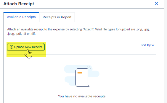 7. If required, attach a receipt by selecting the Add a Receipt box, select Upload New Receipt Image, and select your desired attachment.
