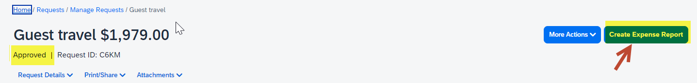 4. The Travel Request will be linked with your Expense Report, close the window.