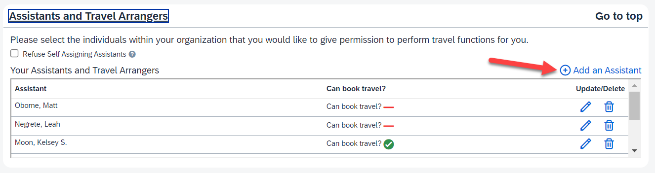 10. To add multiple Travel Assistants, repeat this process.