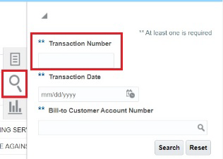 2. In Billing, expand the Search: Transactions menu on right side and enter: