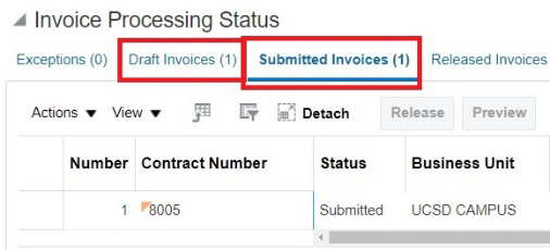 1. Select Overview page, review Invoice Processing Status section to view Invoice status.