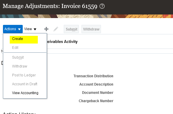6. Then open the Actions dropdown and select Manage Adjustments.